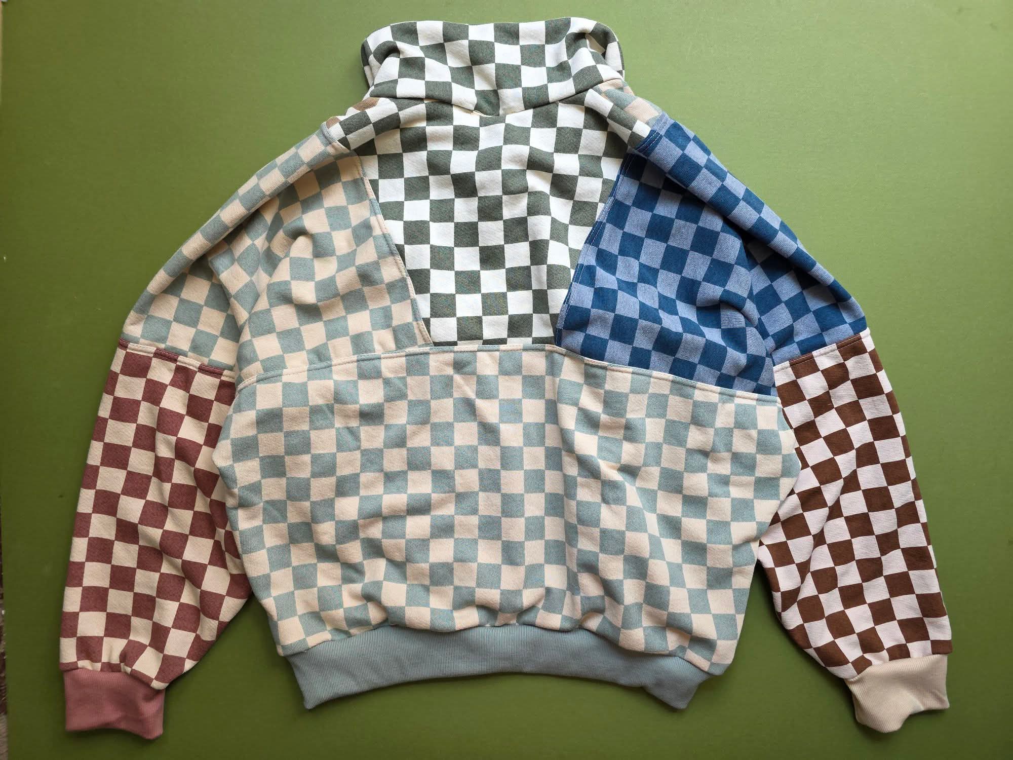 Made with organic American millled cotton french terry, (blue is not organic) and rib. This halfzip with pockets features a slouchy, drop sleeve style in the most EPIC colorblock ever
